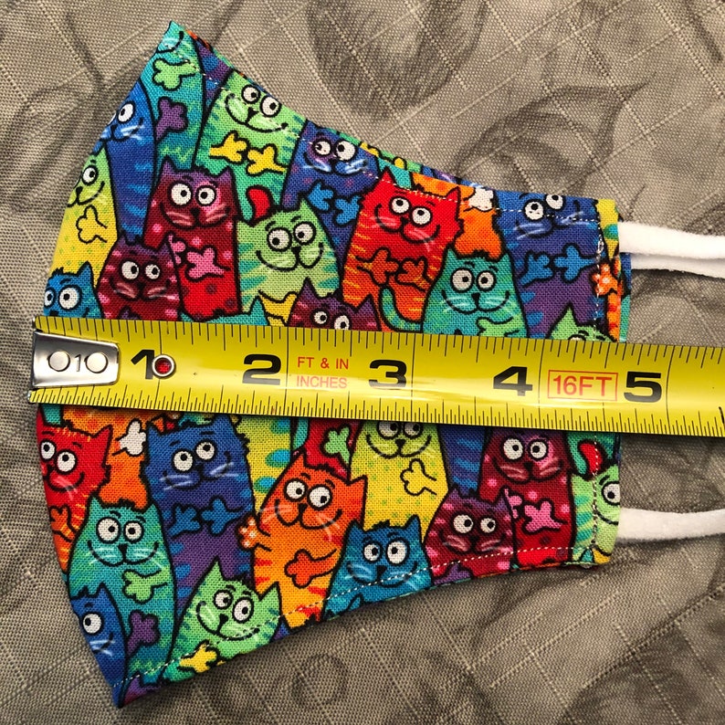 Colored Cat Mask 3. Instructions. 1. Open any of the printable files above by clicking the image or the link below the image. You will need a PDF reader to view these files. 2. Print out the file on white A4 or Letter size cardstock. 3. Color the mask …Non-medical face masks help you express yourself even when you can't show your face; Two layers of soft 95% polyester / 5% spandex fabric with sublimation print on the outside layer; …Printable Cat Mask and Template to Color. It's time to say meow! Pretend play is always fun and today it's time to play cats with these fun printable cat masks and templates to color. I've got a lot more free printable masks. Andreja {Itsy Bitsy Fun}This adorable black cat mask is purrrfect for the dress up box, themed parties or to complete a Halloween costume. It has white markings, a pink nose and whiskers. Back side of the mask is plain black. The cat mask is completely sewn from two layers of eco felt and a layer of interfacing. For children ages 3 and up.Fashionable, reusable, Covid-19 Approved, 3-layer protective community face covering CWA 17553:2020 with melt blown micro-filter.Available in sizes S, M, L, XL and XXL perfectly fitting all faces from children to large adults.This MaskDepot product has 99% filtering efficiency for particles as small as 3 microns according to independent EN ISO...15/07/2021 · To accessorize, Sierra donned a cat print face mask from Amazon, a multicolor headband, several Silly Bandz rubber bracelets, and a handmade beaded bracelet. She finished her look with cat eye makeup and pink dotted face makeup. According to Sierra, her favorite fashion brand is Hard Decora. Follow her on Instagram to see more of her personal style.Face Mask Colorful Cat mask that is fun to wear, all cotton Filter pocket Adjustable straps, Breathable Mask, Washable Mask Fun Funny Mask. NO FOG glasses face mask. All masks and filters are packaged individually. All made in the USA OPTIONS AVAILABLE: KN95 White Mask Available 5 Pack Filter100% 3 tier cotton colorful cats facemask with wire nose piece and adjustable elastic ear loops in a colorful cat print.Colorful Scottish Fold Face Mask – Pink. This Colorful Scottish Fold Face Mask is bright and cheerful for these trying times. If you have to wear a mask, why not a unique one? These masks are only available here at The Great Cat Store. This cat themed face mask is made of 100% polyester exterior 100% cotton lining interior and is washable and reusable. Does not come …Funny Smile Cute Cat Cloth Face Mask With Filter Pocket Washable Face Bandanas Balaclava Comfortable Print Reusable Fabric Mask With 2 Pcs Filters 4.6 out of 5 stars 202 $9.99 $ 9 . 99