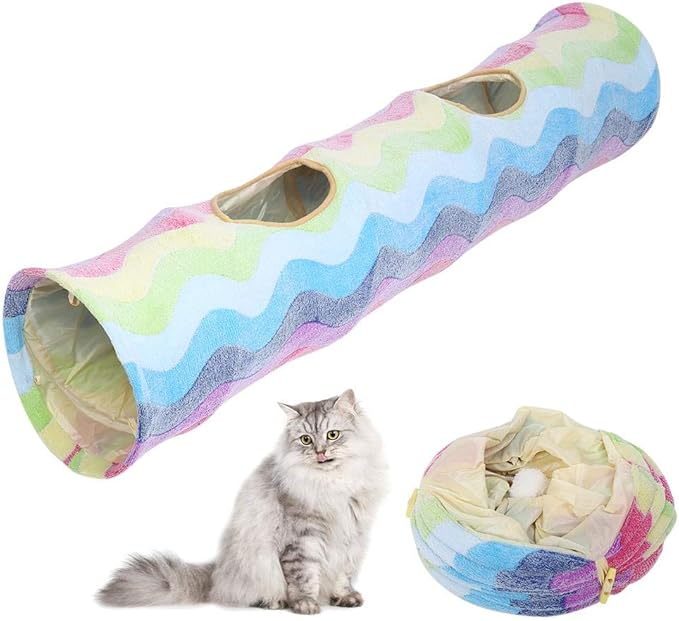 ★〖Durable & Spacious T-shaped cat tunnel〗: The 3-way cat play tunnel is durable enough to withstand some claws-out pouching and biting, and wide enough to accommodate grown-up cats. ★〖 Collapsible & Easy to clean 〗: The tunnel is foldable, it can be fold with a elastic band in seconds for easy storage.strong and solid sprung steel frame with protective ends, which is …18/12/2021 · What we love: The Pet Magasin Collapsible Cat Tunnel is ideal for pet parents who don’t mind bold colors when it comes to their cat’s playthings, we love the striped design and different sized tunnels. This crinkle two-pack is best for households with more than one kitty who hate to share the same toys, and the hanging accessories will help get their hunting instinct …This item: DeeNiner Colorful cat Tunnel Cat Tunnel for Indoor Cats Large, with Play Ball S-Shape 5 Way Collapsible Interactive Peek Hole Pet Tube Toys $14.89 ($14.89/Count) In Stock.